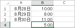 時間の合計で24時間以上を表示する方法